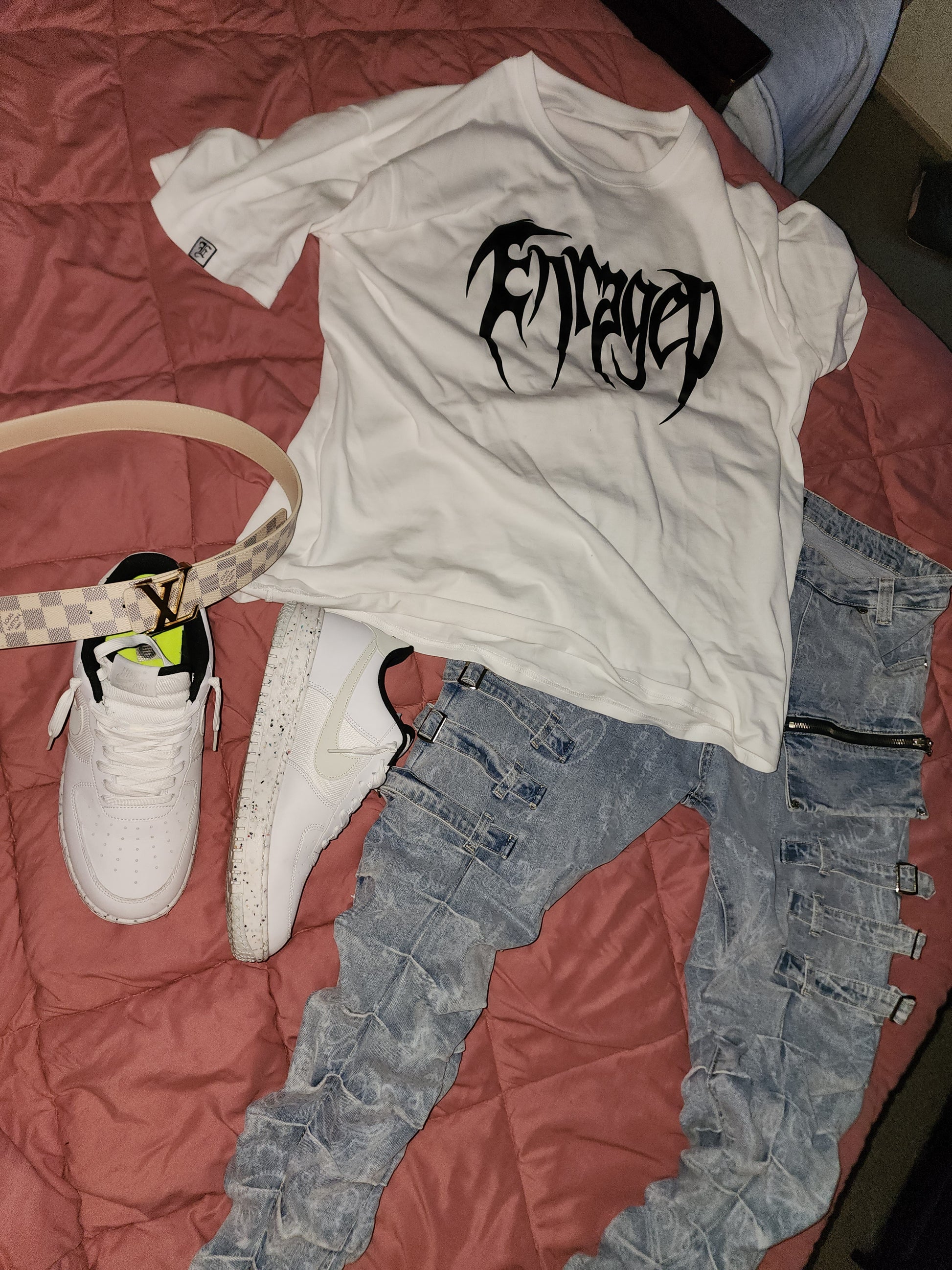 Puff print Enraged text of logo across chest